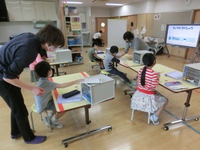 こだま学級の授業です。自分に合ったプリントを用意して、言葉の学習を進めていました。