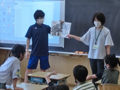 次の時間2-3の英語活動です。英語の絵本を読んでいます。