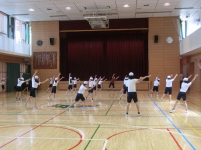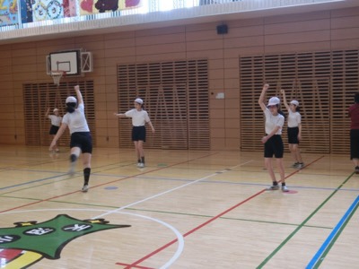 アリーナでは6-2が体育をしていました。音楽に合わせて創作表現する活動です。アドリブで自由に踊っています。