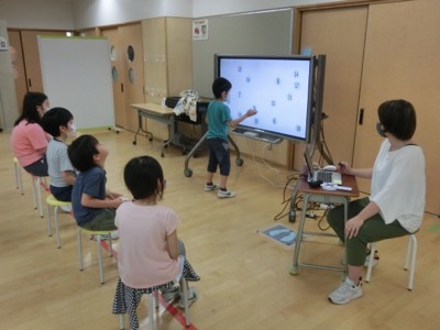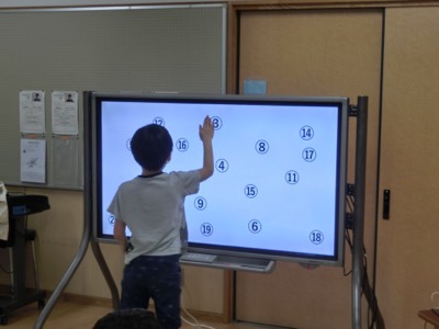 これはこだま学級の授業です。画面に出る数字を順番にタッチして消していきます。