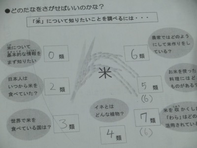 日本十進分類法と言って、米について調べたい時、稲作の歴史なら2番、米作り農家のことなら6番というように分類されています。