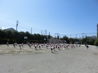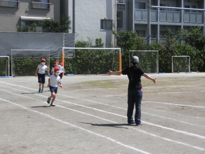 2時間目はこだま学級が校庭で体育。長距離を走って身体を鍛えています。