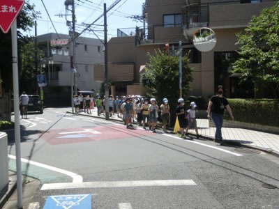 3年生は地域探検に出かけました。天沼小から天沼八幡を通って…