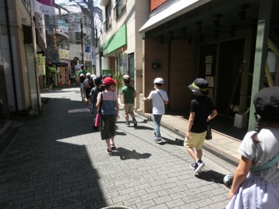 教会通り商店街を歩いています。天沼の町をみんなで歩いて、地域のことを学習していきます。