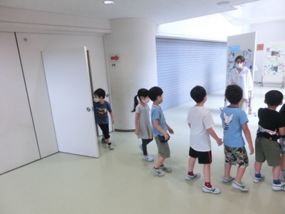 防火扉が閉まっているときに火から遠ざかるように逃げるための方法を教わりました。