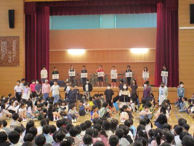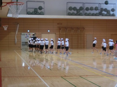 アリーナで体育をしていた4-2の子どもたちが整然と避難していきます。今はコロナ対応で全員が集合しての避難訓練はできないため、廊下まで避難して終了しました。火災や地震、水害など、さまざまな災害が起きたときにどう行動するかを考えられるようにしていきたいですね。