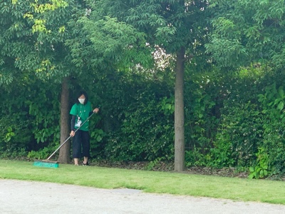 土曜授業が終わったあとの午後の校庭で、AW芝生隊の神谷さんが一人、芝生の手入れをしていました。見えないところで学校をサポートしてくださる地域のみなさんに感謝です。
