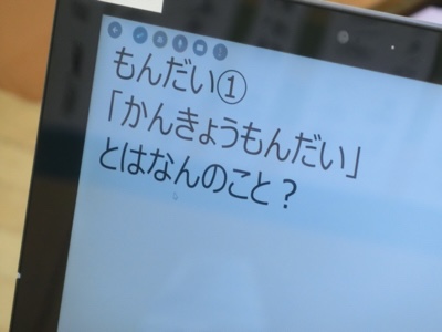 クイズで環境問題について考えさせる企画のようですが、いくら平仮名にしても低学年には難しいんじゃないですか?と担当の先生から助言されていました。