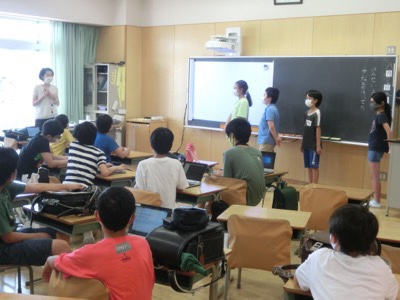 今日の5時間目は5・6年生による委員会活動です。代表委員会では、学年別運動会のスローガンを考えていました。代表委員会だけは4・5・6年生が所属しています。