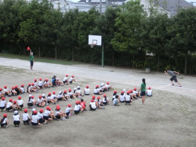 今日の「暑さ指数」は運動中止のレベルまでは上がりませんでしたが、それでも待っている時間は日陰で待機させました。今後、暑さが続くと練習も十分にできないかもしれません。その場合は学年別運動会の日程を遅らせることも考えています。