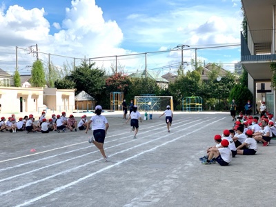 あまぬまだよりでお知らせしたとおり、今年の運動会は「学年別運動会(仮称)」として実施することになり、それに向けて各学年が動き出しました。2年生が校庭を元気よく走っています。