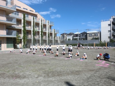1時間目はそれほど気温は上がっていませんでしたが、2年生の運動会練習ではなるべく校庭の日陰の部分に並ばせていました。