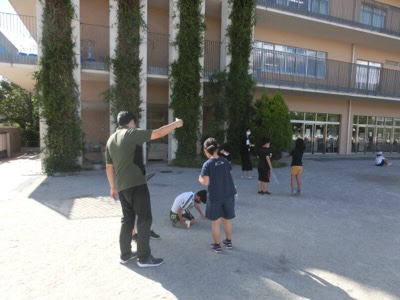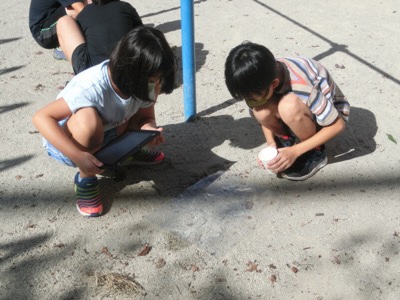 4-2は校庭で水がどのように流れるか実験をしていました。