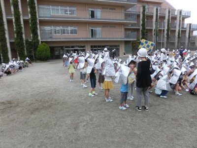 コロナ対応のため、これまで全員で外に避難する訓練は中止していましたが、今日は今年度初めて全員が校庭まで避難します。