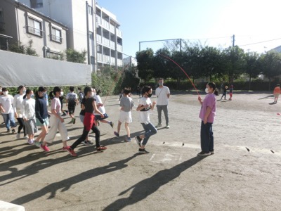 その横では、10月24日の「長縄グランプリ」に向けて練習が行われていました。今年の「長縄グランプリ」はコロナの影響で6年生限定の大会になります。