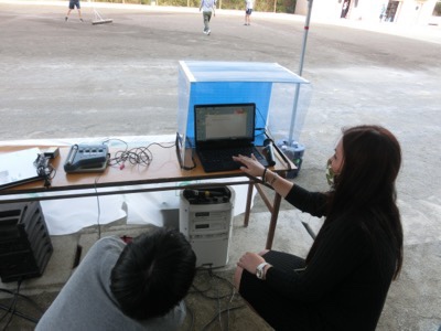 放送機器の確認をしています。当日、音楽が止まったら大変なことになるので、細かく確認・調整します。