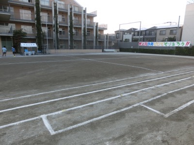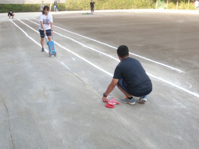 リハーサルの後は前日準備です。練習で引かれたラインを一旦全部消してきれいにします。