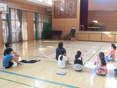 各学年の閉会式の司会をする係の子たちが練習をしていました。