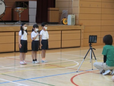 1年生の児童代表の言葉も、タブレットのカメラに向かって発表しました。