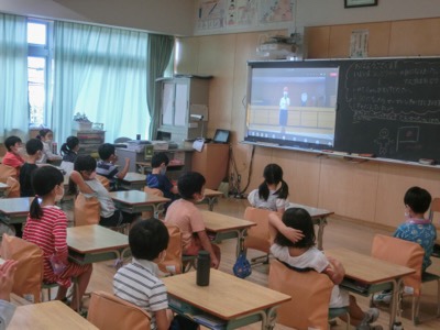 教室には、リアルタイムでアリーナの映像と音声が流れてきます。開会式はこのようにオンラインで全校一斉に行いました。