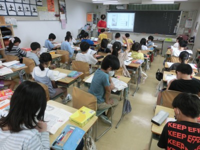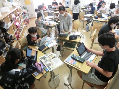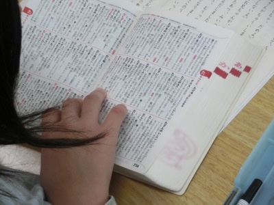 3-1は、国語で「ちいちゃんのかげおくり」を読んで、わからない言葉を辞書を引いて確認していました。