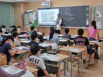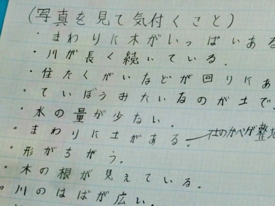 4-3は社会科で玉川上水について学んでいました。玉川上水の画像を見て気が付いたことを発表しています。
