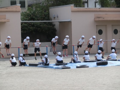 運動会が終わっても、通常の体育の授業は行われます。2-2は鉄棒の授業でした。