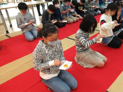 感染防止対策のため、お菓子は個包装になったものを用意し、それを自分で剥いていただきました。