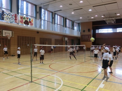 5-1はソフトバレーです。みんなが楽しめるルールを自分たちで工夫するなど、ゲームを楽しむ活動を進めていきます。