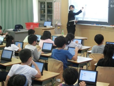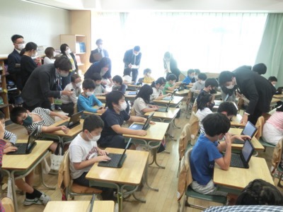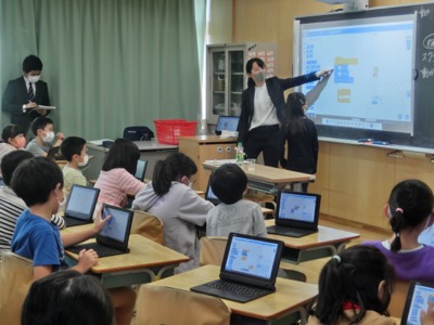 今日の午後は3-2でプログラミング教育の研究授業がありました。研究授業というのは、授業を先生たちが見て指導法について話し合う研修です。