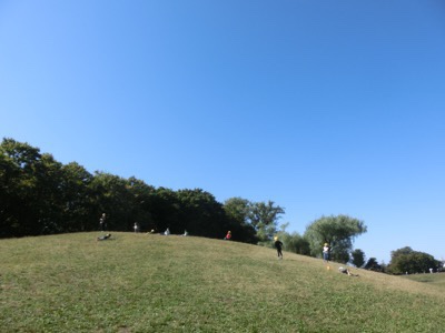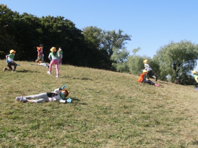 山の斜面を走ったりゴロゴロと転がって下ったりして楽しく遊びました。