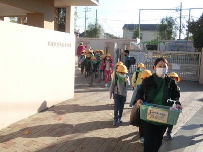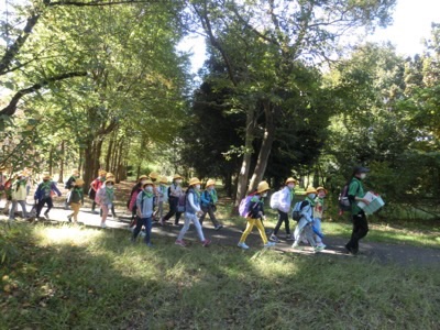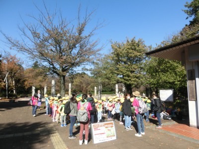 今日は1年生が生活科見学で都立武蔵野公園に出かけます。雲ひとつない青空です。