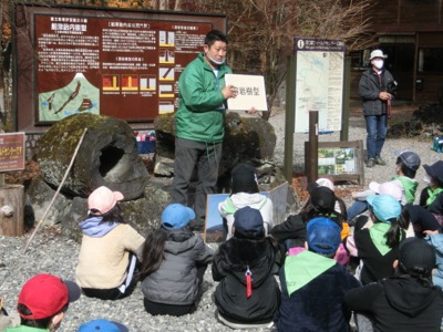 グループに分かれてネイチャーガイドの方から富士山の自然についてお話を伺いました。