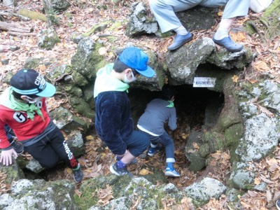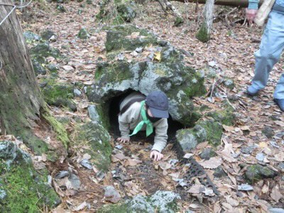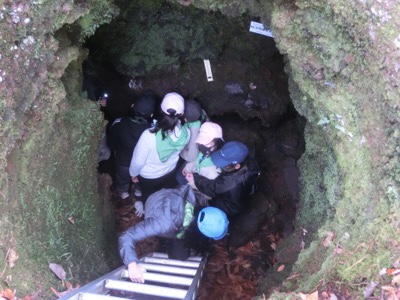 井戸のような溶岩樹型にも入りました。中は年間を通して10℃だそうです。