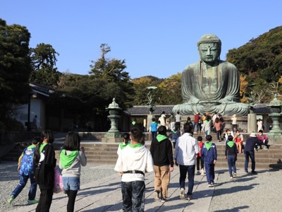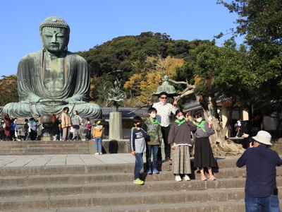 大仏をバックに記念写真です。小春日和の下、1日たっぷり楽しめた鎌倉移動教室でしたね。
