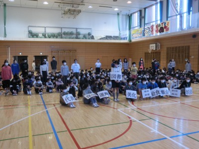 2020-11-21 委員会紹介集会 今年度は土曜授業の朝に放送やオンラインで朝会を行っています。今朝は、朝会の後に委員会紹介集会がありました。各委員会の委員長が、委員会の仕事などを発表します。 委員長が発表したあと、その委員会の委員も立って紹介します。 昨年度までは全校児童がアリーナに集まって聞きましたが、密を避けるために5・6年生のみが集まり、そのほかの学年の子供たちは教室でオンラインの映像を見ました。1-3の子供たちが真剣に聞いていますね。 Home › 1年 › 委員会紹介集会 関連記事 今日の授業風景 今日の学校風景 今日の授業風景 1年生の茶道体験 展覧会閉会しました 今日の授業風景 11月の土曜授業(2回目)