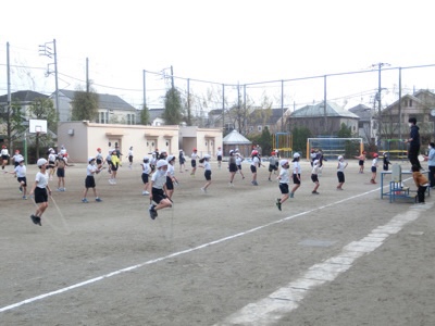2-3と2-4の体育はリズム縄跳びです。音楽に合わせてさまざまな跳び方をしていました。