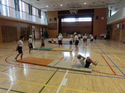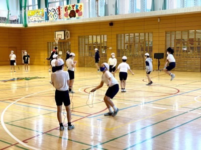 アリーナでも5-2が縄跳びをしていました。今年は長縄記録会がコロナの影響でいつものようにはできませんが、短縄や長縄は授業の中で取り組んでいます。