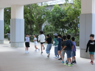 休み時間には、長縄が盛んに行われています。これは5年生でしょうか。
