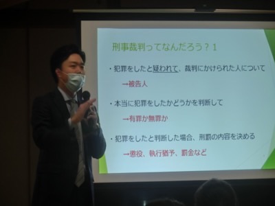 刑事裁判とは何か、どのような手順で行われるかなどについて、わかりやすく説明してくださいました。