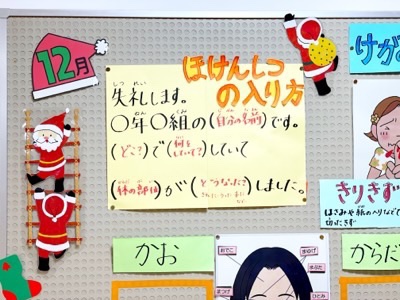 保健室前の掲示板は、養護教諭が毎月更新しています。