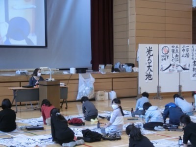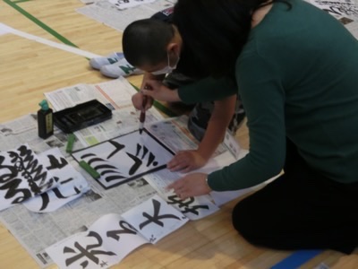 2020-12-16 4年生の書き初め練習 昨日の6年生に続いて、今日は5年生と4年生が書き初めの練習をしました。 今日も、地域の書道家の日置先生がご指導してくださいます。4年生の書き初めのお題は「光る大地」。 難しい右はらいが上手に書けるように何度も練習します。AWのサポーターが個別に指導をしていました。 Home › 4年 › 4年生の書き初め練習 関連記事 体育の授業 今日の授業風景 体力調査2日目 今日の学校風景 今日の授業風景 オンライン読み聞かせ 天気のよい一日