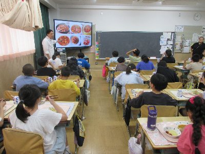 今日も、地域の書道家の日置先生がご指導してくださいます。4年生の書き初めのお題は「光る大地」。