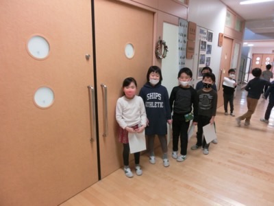 休み時間などになると、校長室の前に並んで検定の最後の難関にチャレンジします。