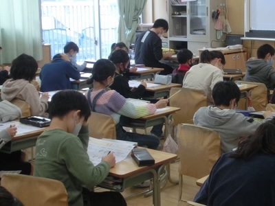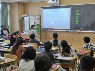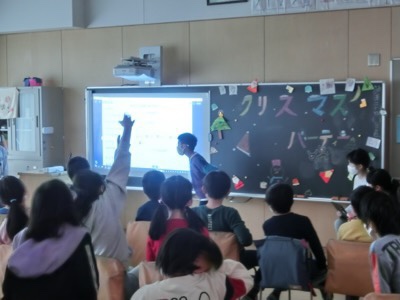お楽しみ会をするクラスもあります。4-1は謎解きクイズを楽しんでいました。