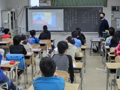 各教室では、電子黒板に映ったTeamsの画面を見て終業式に参加ました。みんなが集まれる日が早く来るといいですね。