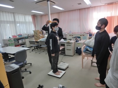 6-3は身体測定をしていました。6年生は小学校生活最後の身体測定です。みんな大きく成長しましたね。