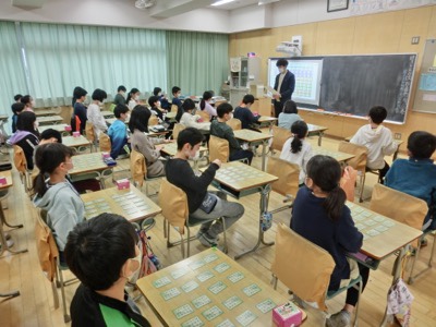 4-1は、向かい合わないで対戦する今年の百人一首のやり方の確認をしていました。