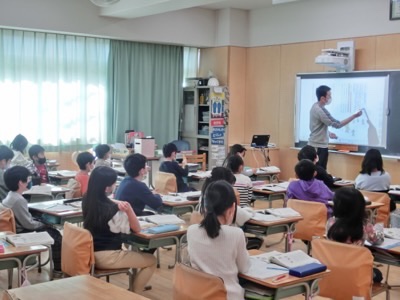 1-3の体育は、妊娠中の阿曽先生に代わって講師の大川先生が指導しています。
