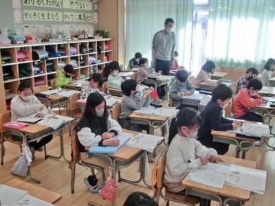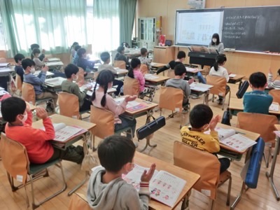 2-2の国語の授業は、説明文「おにごっこ」の読み取りです。